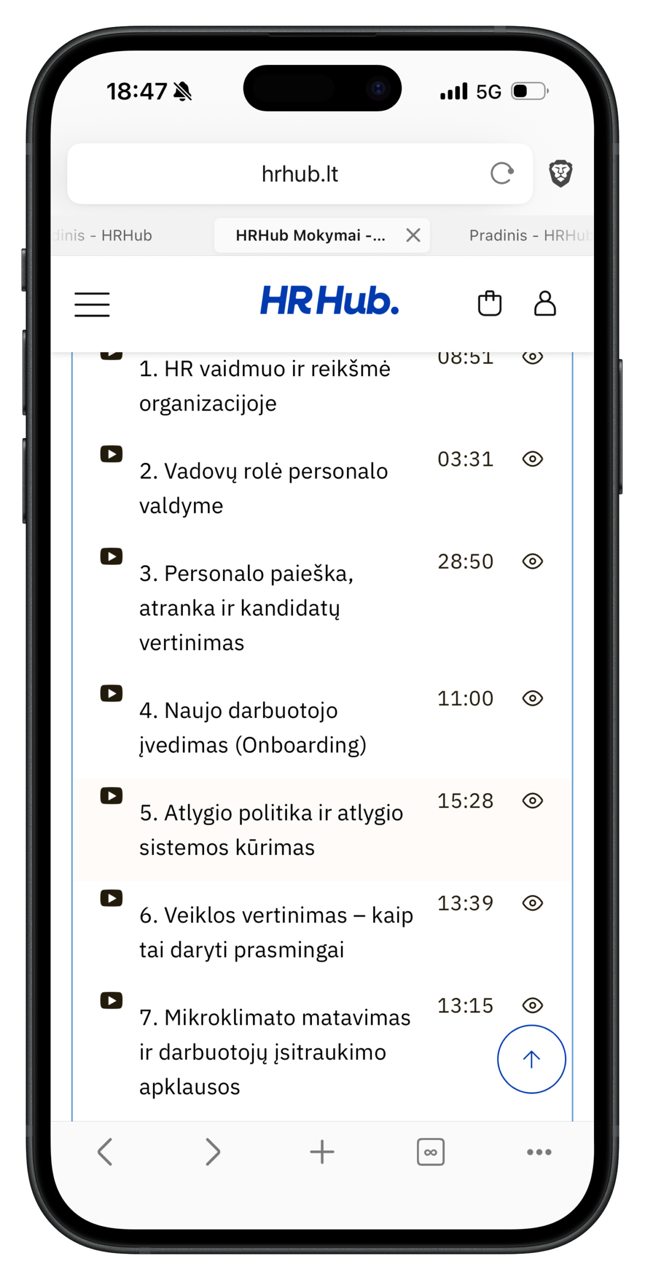 HRHub mokymų video žiūrėk tau tinkamu tempu - kada nori ir kur nori